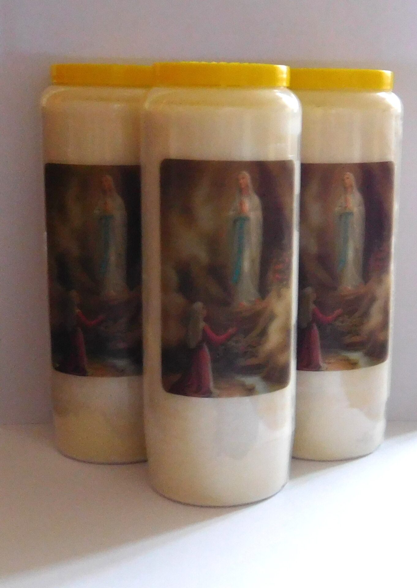 Noveenkaarsen met Maria van Lourdes 3 stuks.